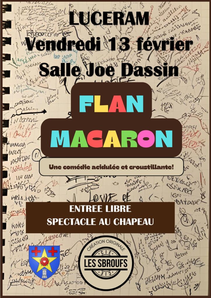 Vendredi 13 février à 21h, salle Joe Dassin La soirée théâtre du mois de février vous propose la pièce: Flan Macaron. Une comédie écrite, mise en scène et jouée par la compagnie LES SBROUFS Résumé : Une comédie acidulée qui casse les codes! C’est l’histoire de 4 potes comédiens, tous un peu décalés mais surtout […]