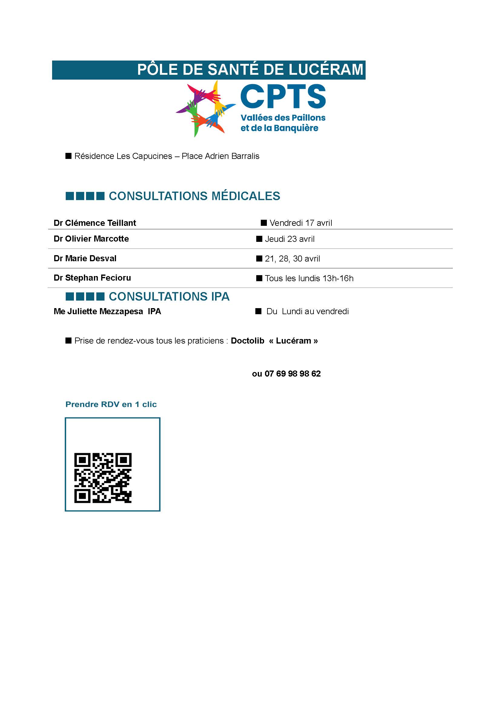 Consultations médicales et permanences d’infirmière en pratique avancée au Pôle de santé de Lucéram