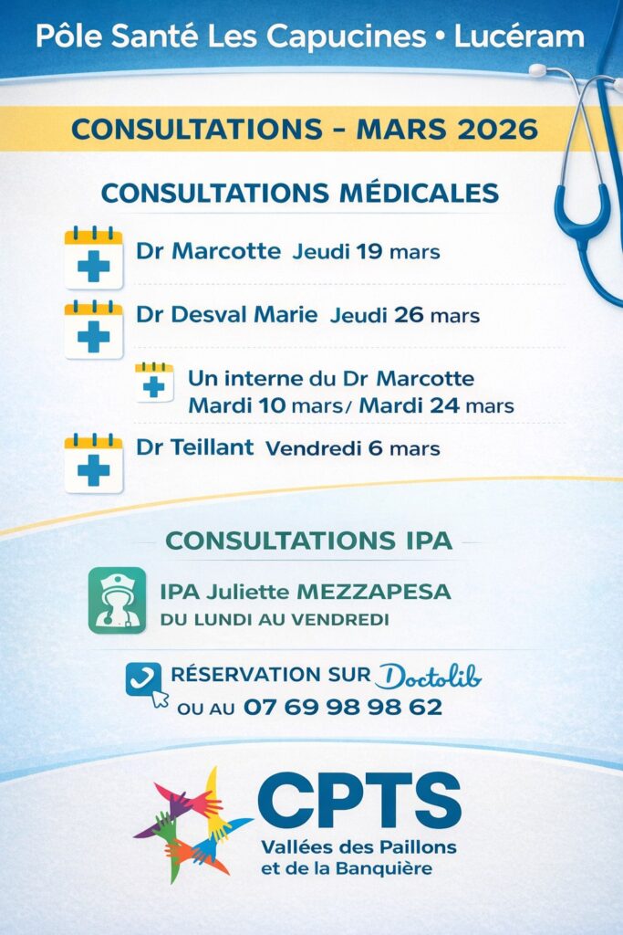 Programme consultations au Pôle Santé – mois de mars